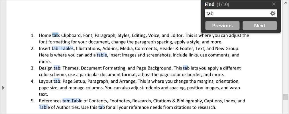Een van de gemakkelijkste manieren om te zien of uw PDF doorzoekbaar is, is door te zoeken naar bepaalde tekst waarvan u weet dat deze in het document voorkomt. Afhankelijk van de PDF-tool of het platform dat je gebruikt, kun je op verschillende manieren naar tekst zoeken.