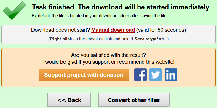 - Wanneer het proces is voltooid, ziet u het resultaat met een link naar uw bestand. Selecteer de link om deze in een nieuw tabblad te openen en download vervolgens het document in uw specifieke browser.