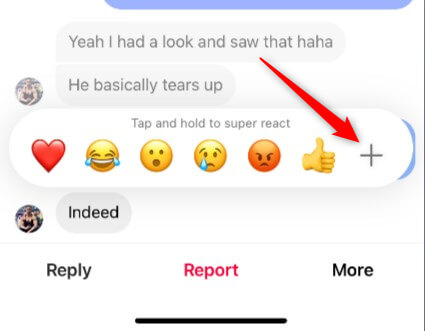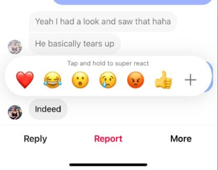 - Je kunt ook ‘superreageren’ door op de emoji te tikken en deze vast te houden.