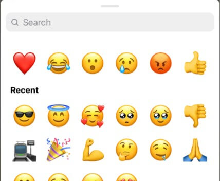 - Als je de emoji die je wilt gebruiken hier niet kunt vinden, tik je op de+pictogram om alle beschikbare emoji's weer te geven.