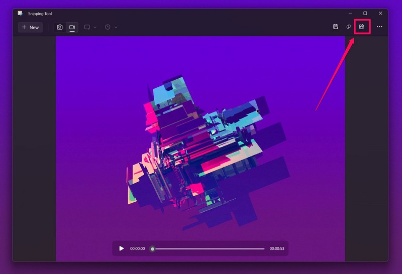 8.Nu zal de Snipping Tool-app de schermopname leveren als een MP4-bestand in eenvoorbeeldvenster.