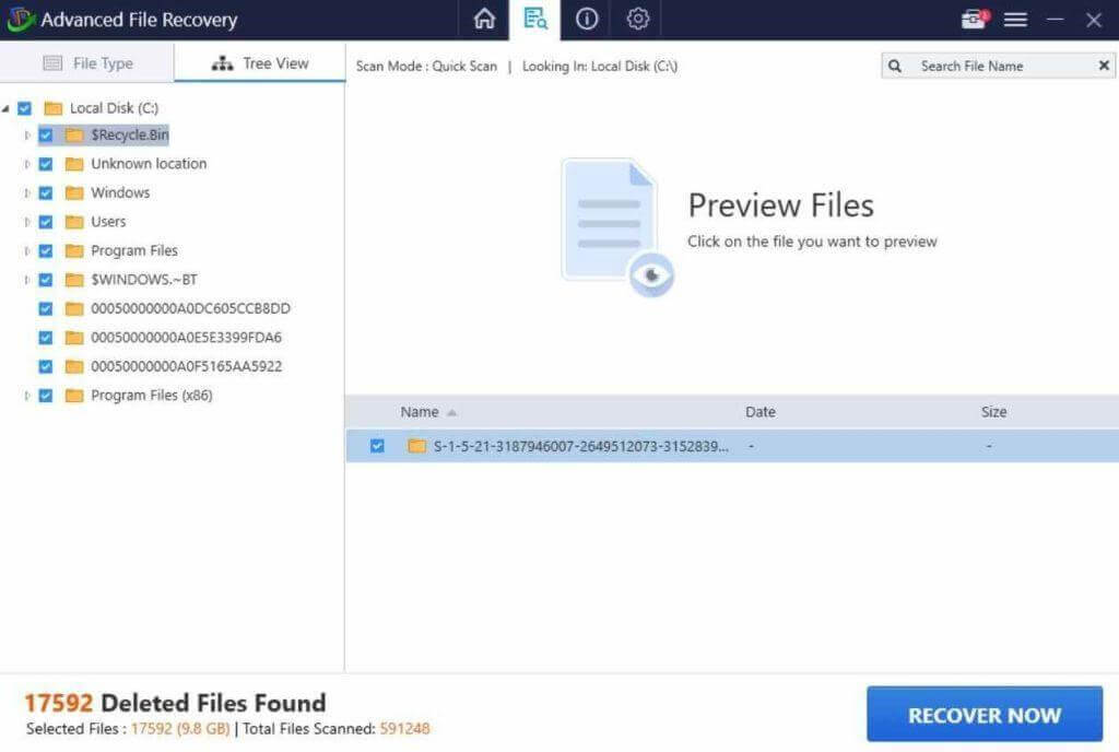 Stap 6:Zodra de scan is voltooid, kunt u dit doenvoorbeeldde herstelde bestanden en selecteer degene die u wilt herstellen. Klik op de knop Nu herstellen en selecteer een andere locatie dan de eerder opgeslagen locatie om overschrijven te voorkomen.