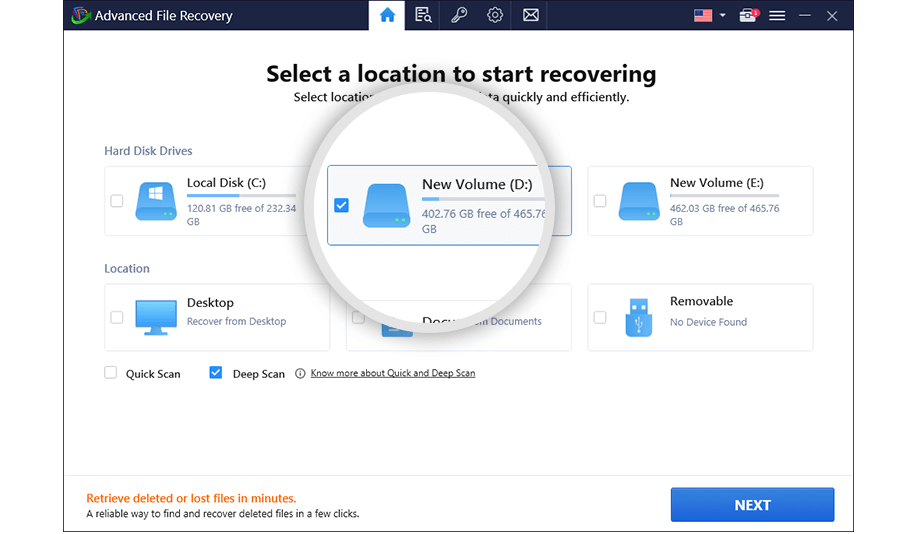 Wij geven de voorkeur aan het gebruik van Advanced File Recovery voor alle problemen met betrekking tot bestandsherstel. Deze geweldige app heeft ons in veel gevallen geholpen waarin we onze bestanden op zowel interne als externe schijven verloren. Hier zijn de stappen: