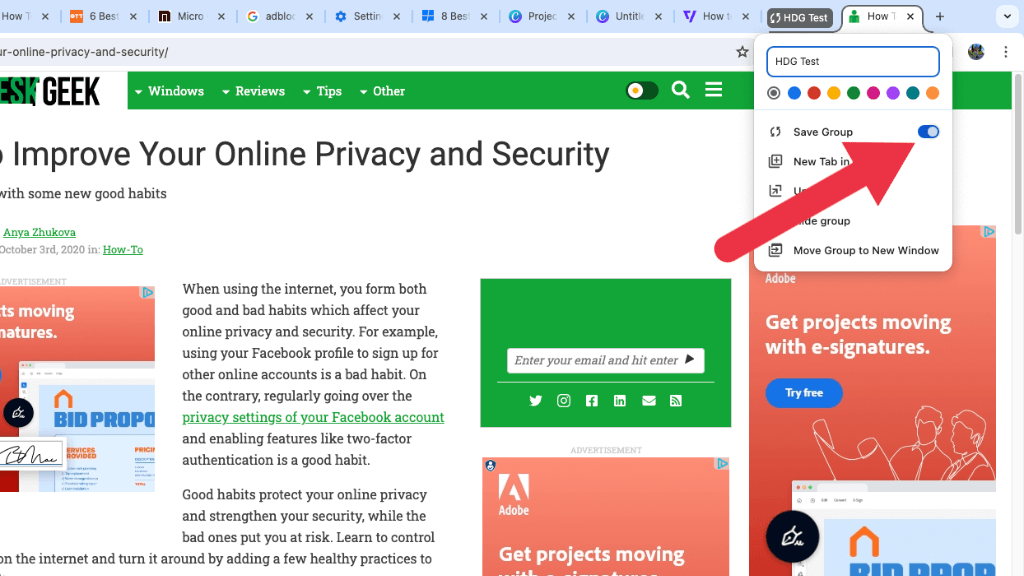 Als de reden dat u te veel tabbladen open heeft, is dat u vergeet welke u nodig heeft, heeft u de mogelijkheid om tabbladgroepen op te slaan.