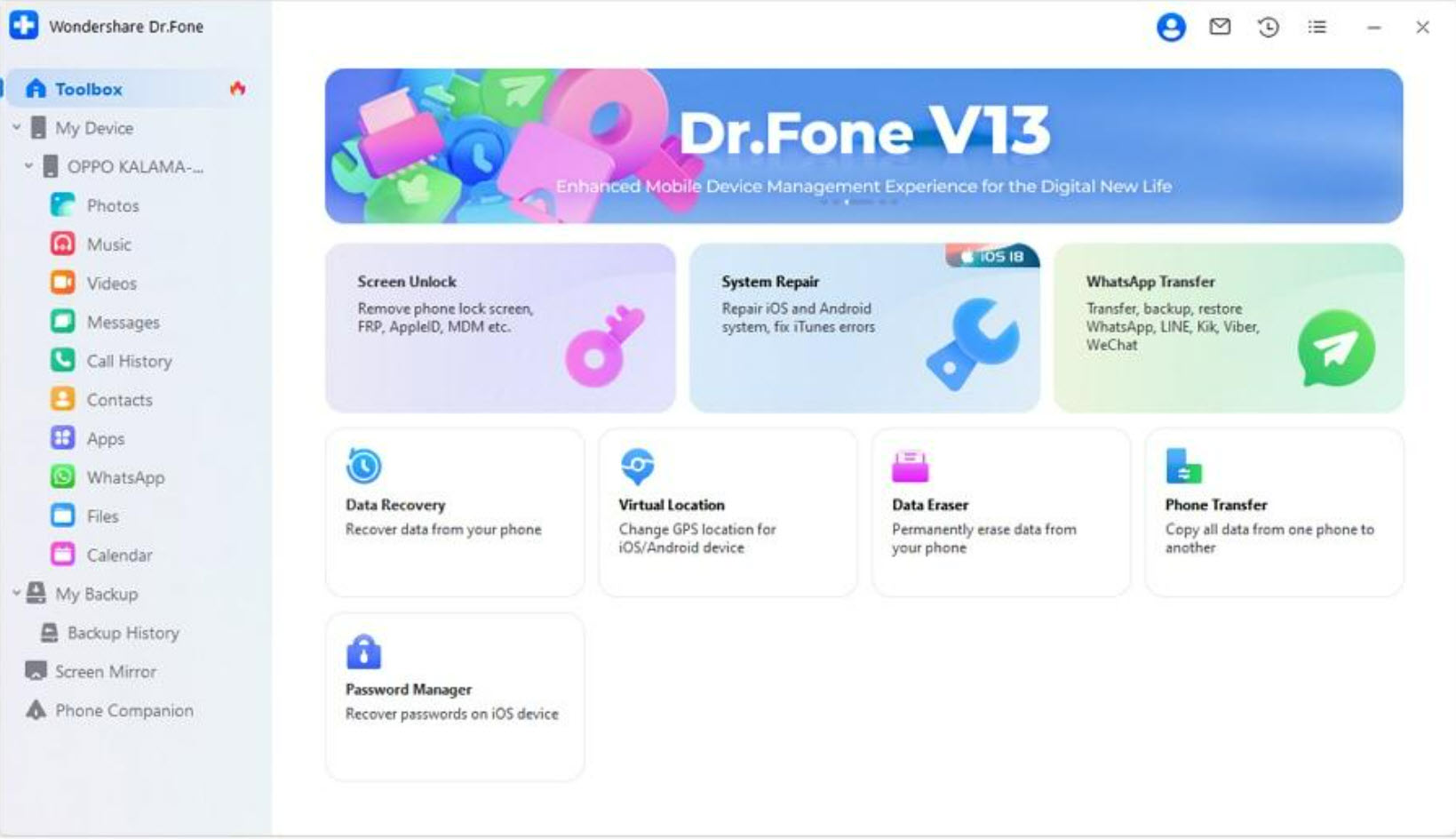 Hier is een lijst met enkele taken die u kunt uitvoeren met Dr.Fone: