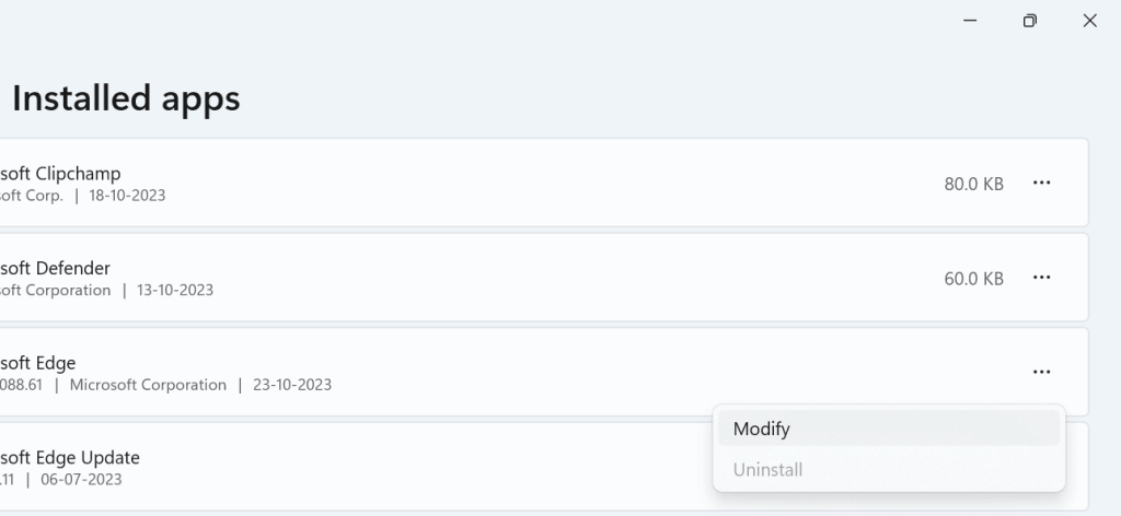 - Blader nu door de apps enkies voor de MS Office-appje wilt repareren.
