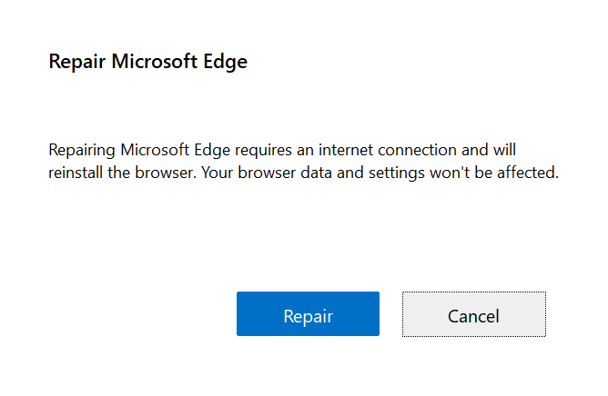 - Selecteer deReparatieknop en vervolgens deKnop Doorgaan.
