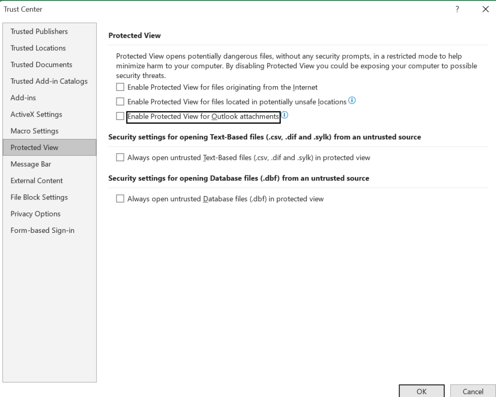 1. Schakel de beveiligde weergave uit