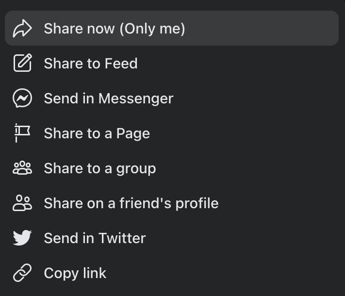 - Daarnaast kun je het geselecteerde bericht delennaar een pagina,een groep, Enop het profiel van een vriend.