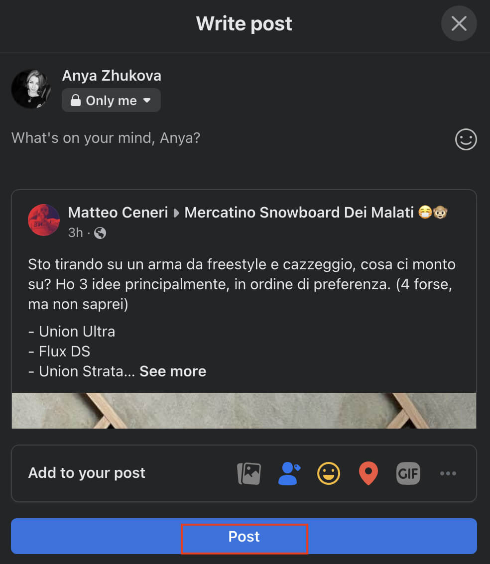 Volg de onderstaande stappen om opnieuw te posten op Facebook mobiel.