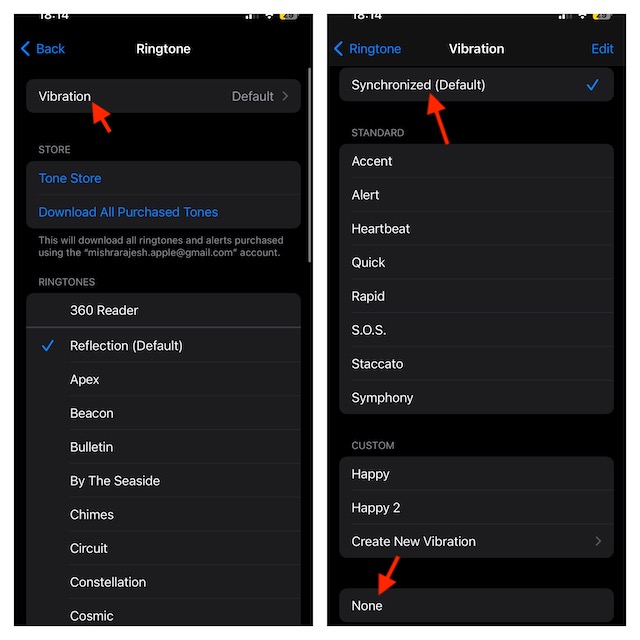 - Tik vervolgens opTrillingenen selecteer het trilpatroon dat u wilt gebruiken.