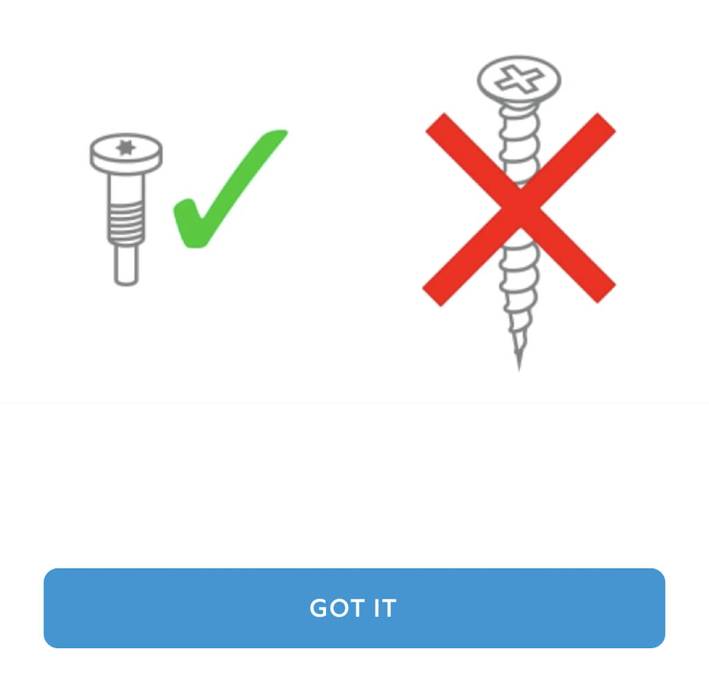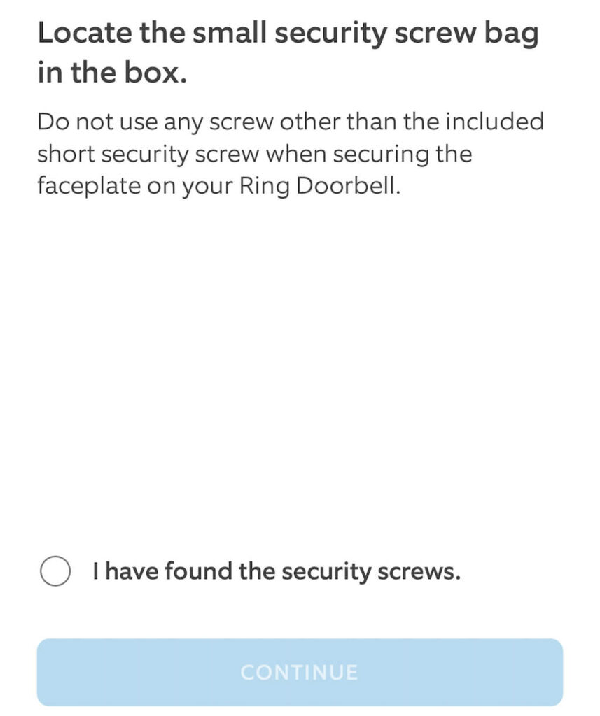 - SelecteerIk heb de beveiligingsschroeven gevondenen selecteer vervolgensDoorgaan.