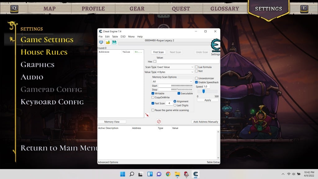 - Open nu het spel dat je wilt versnellen of vertragen. We zullen het demonstreren door te vertragenRogue-erfenis 2, een snelle actieplatformgame.