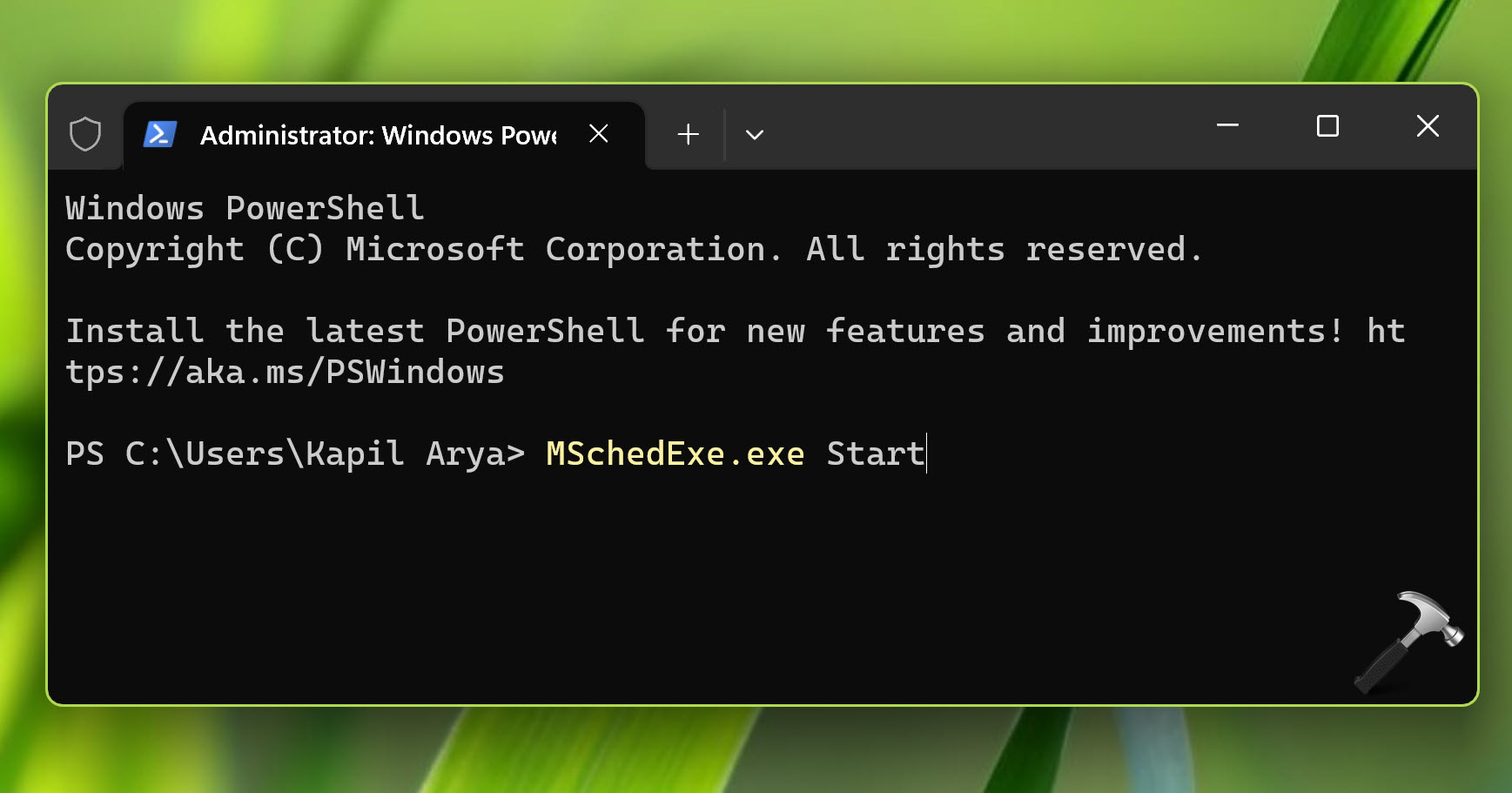 - Plak de onderstaande opdracht om Automatisch onderhoud te starten in Windows Terminal (Admin) en druk op Enter.