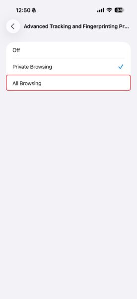 - SelecteerAlle browsenom vingerafdrukbescherming in te schakelen die verder gaat dan privé browsen.
