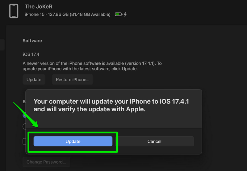 6.Zodra de iOS-update beschikbaar is om te downloaden, klikt u op deUpdateknop.