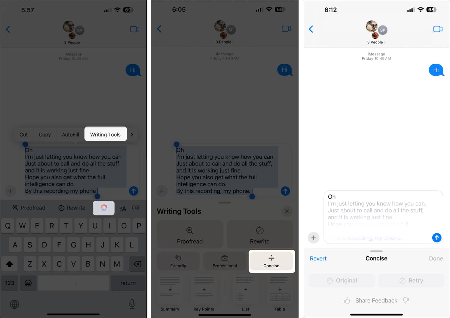 Zoals gezegd kun je de schrijfhulpmiddelen van Apple Intelligence gebruiken in elke app waarin je tekst schrijft; Ik heb gedetailleerd beschreven hoe het werkt in de Berichten-app.