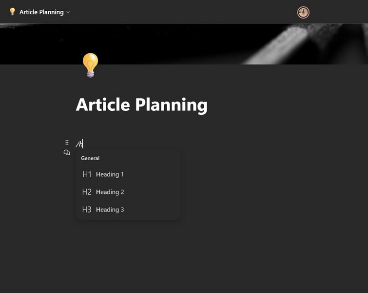 2.Als u bijvoorbeeld een kop aan uw document wilt toevoegen, kunt u eenvoudigweg typen/gevolgd door een"H"om alle kopopties te krijgen.