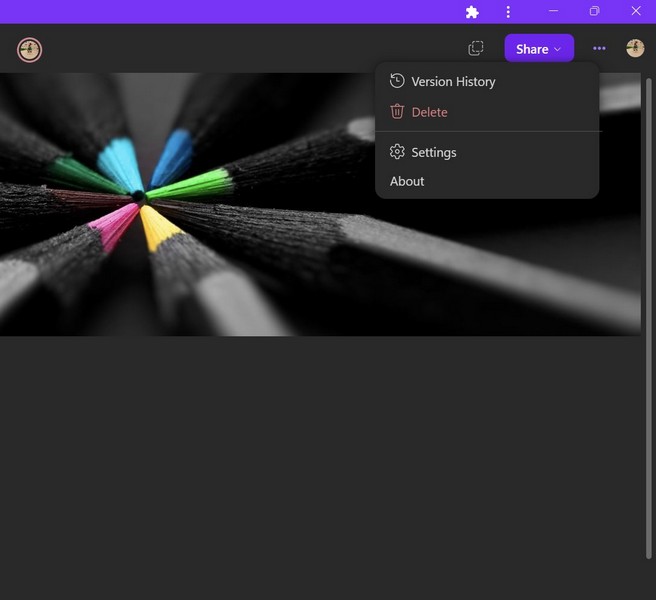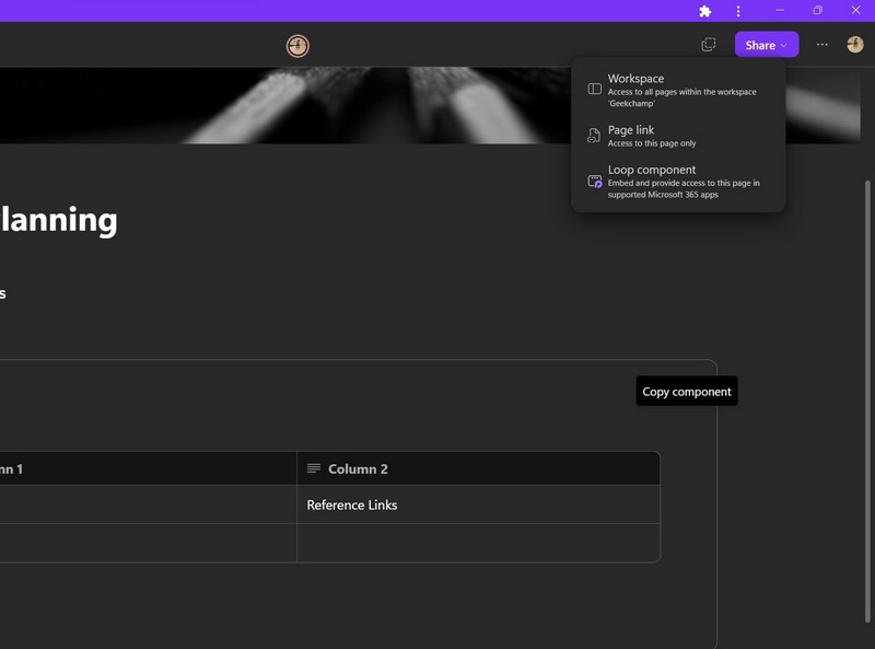 1.Klik eenvoudig op de knop Delen in de rechterbovenhoek van een Loop-pagina om toegang te krijgen tot het contextmenu.