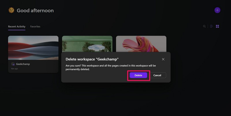 Een werkruimte verwijderen in Microsoft Loop: