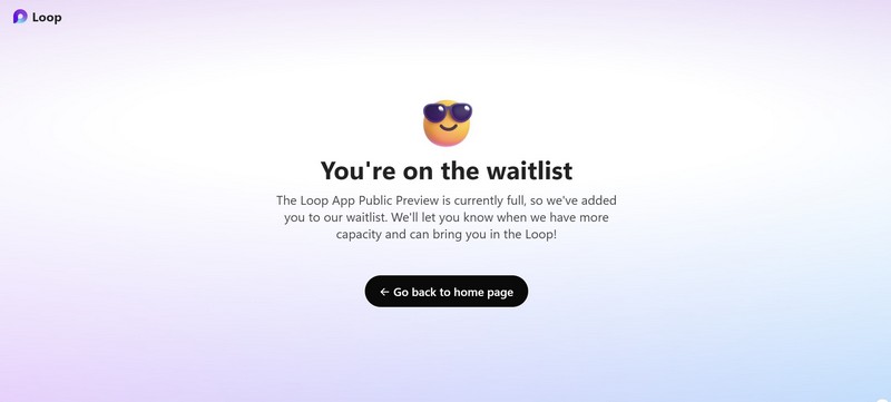 5.Als u nu te laat bent, wordt u mogelijk op de wachtlijst geplaatst voor toegang tot de openbare preview van de Loop App.