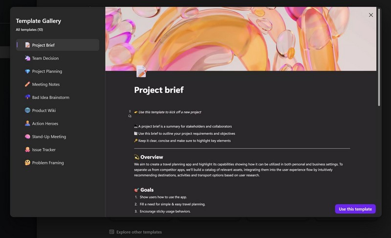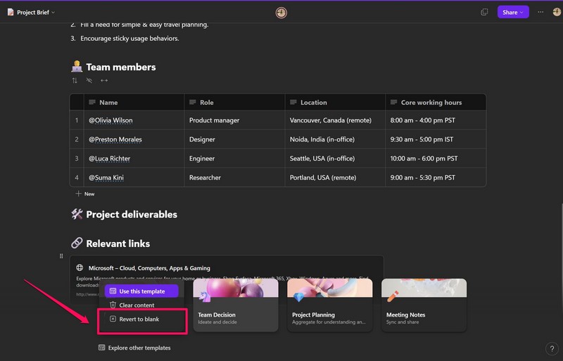 Deze sjablonen zijn vooraf ontworpen door Microsoft en bevatten willekeurige gegevens en informatie die gebruikers kunnen aanpassen aan hun behoeften. Volg de onderstaande stappen om sjablonen in Microsoft Loop te gebruiken: