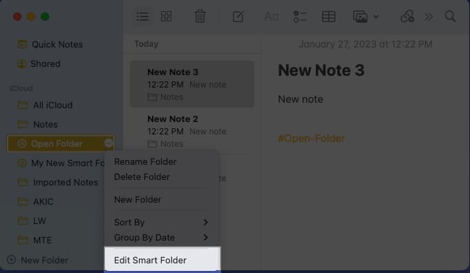 Net als op een iPhone of iPad kunt u eenvoudig een slimme map maken in Notes op de Mac, zij het met een paar wijzigingen.