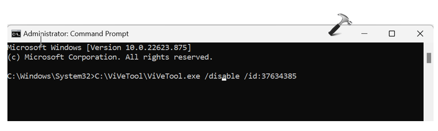 ViVeTool.exe /disable /id:37634385