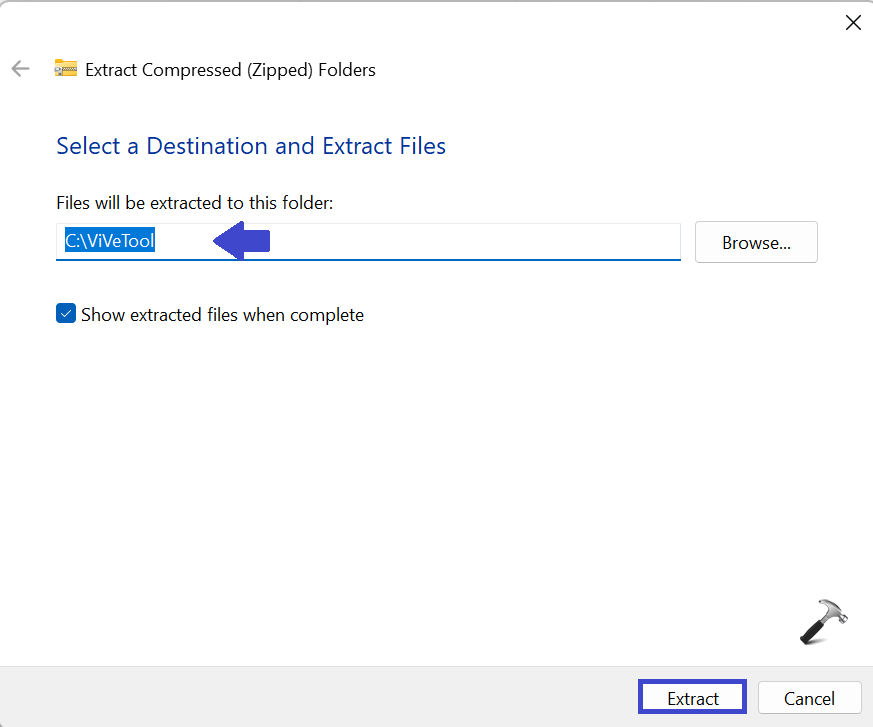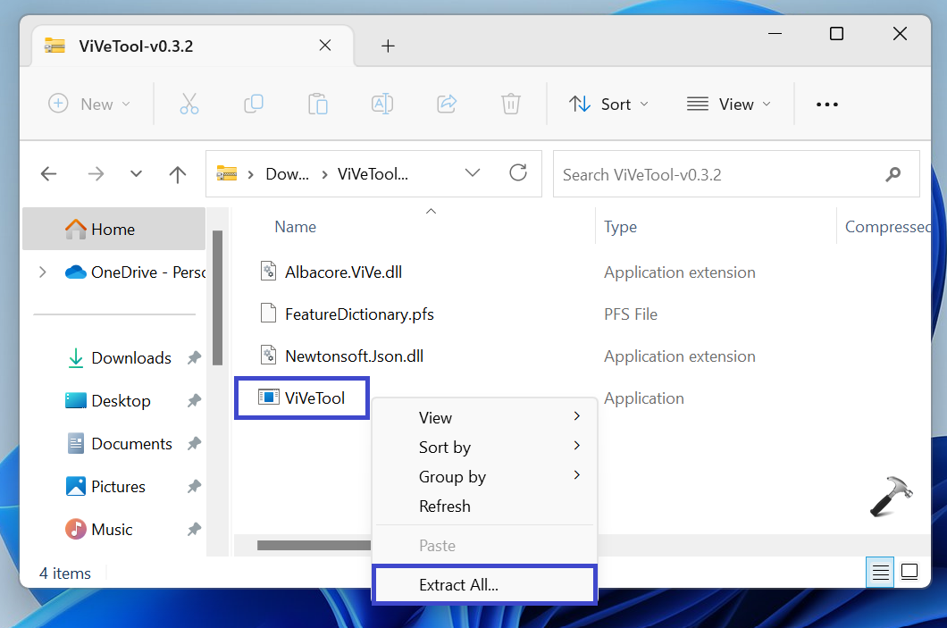 Klik met de rechtermuisknop op de ViVeTool-applicatie en selecteer “Alles uitpakken.”