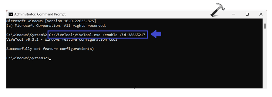 ViVeTool.exe /enable /id:38652916