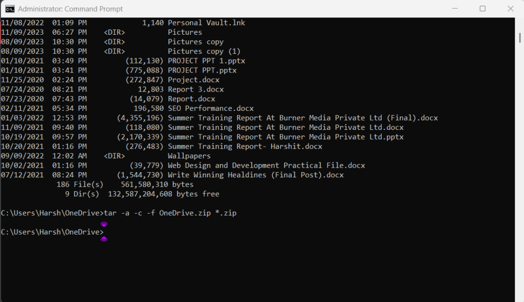 Een andere manier om bestanden te zippen in Windows 11 ismet opdrachtprompt. Om dit te doen, hoeft u er slechts een paar opdrachten in uit te voeren. U kunt de onderstaande stappen bekijken om te zien hoe u dit eenvoudig kunt doen: