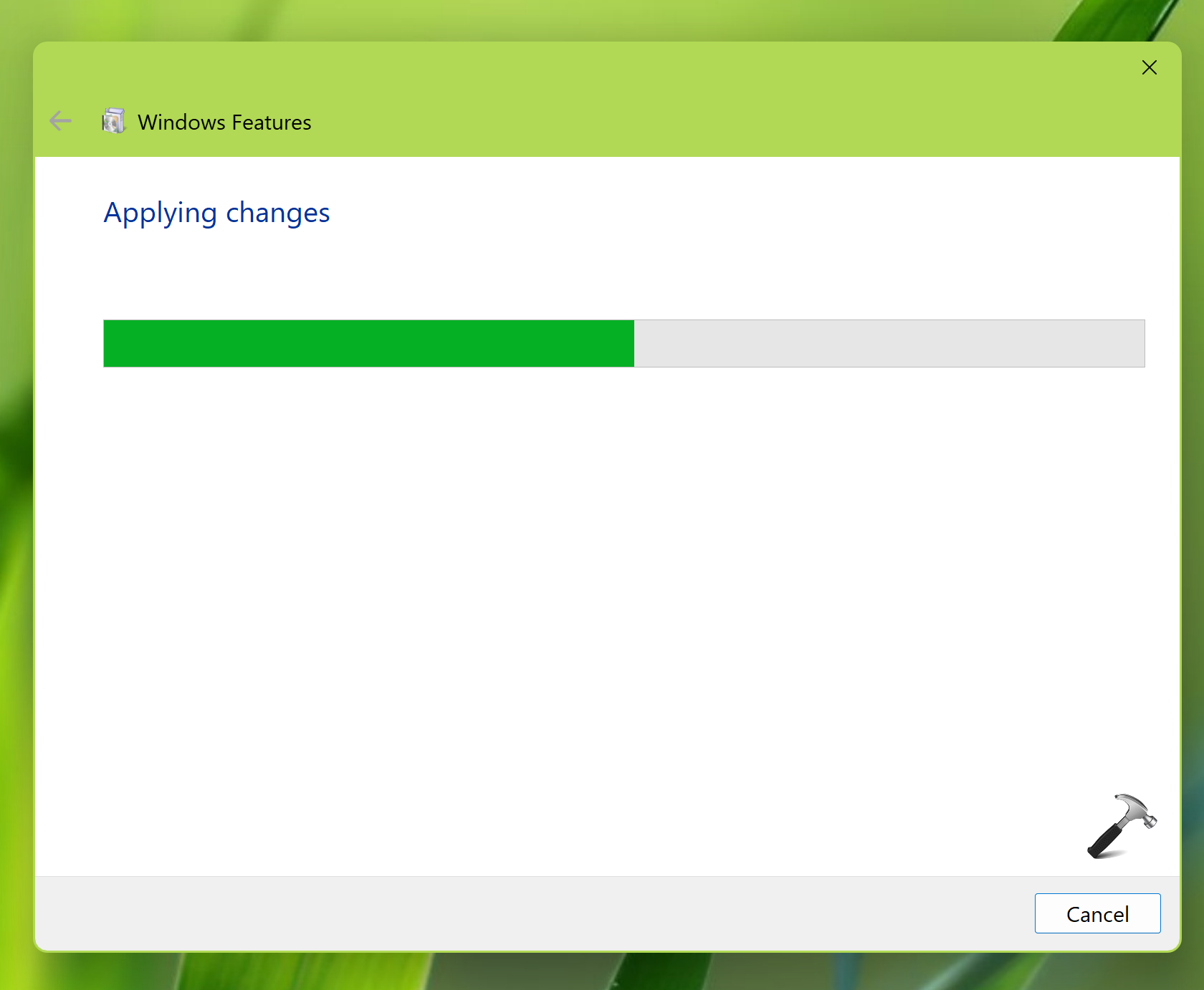 3. Windows zal nu beginnen met het toepassen van de wijzigingen.