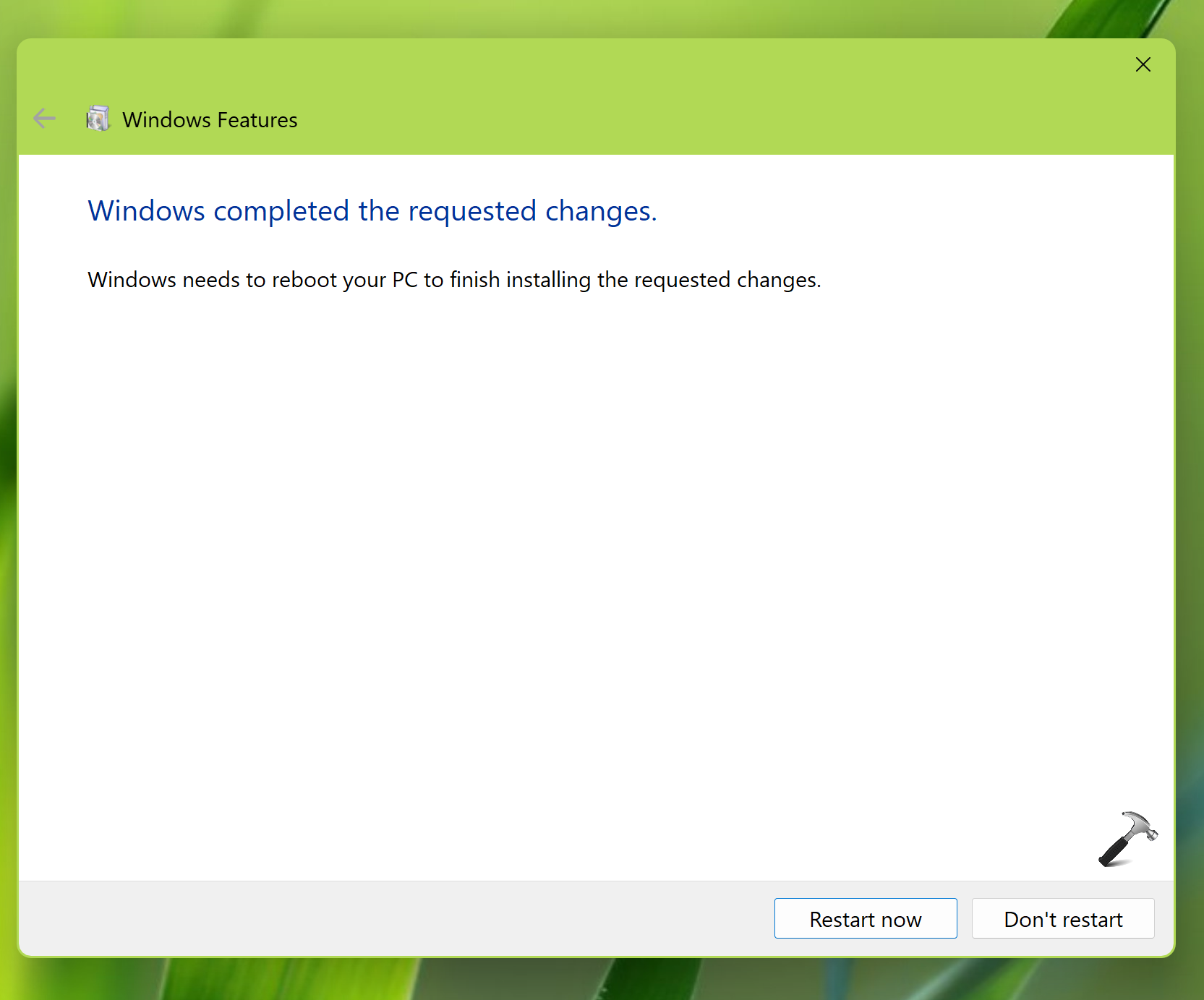 4. Binnen enkele ogenblikken krijgt u na het opnieuw opstarten een melding dat de functie ingeschakeld moet zijn en moet Windows het systeem eindelijk opnieuw opstarten, zodat u de functie kunt gebruiken. Klik op Nu opnieuw opstarten.