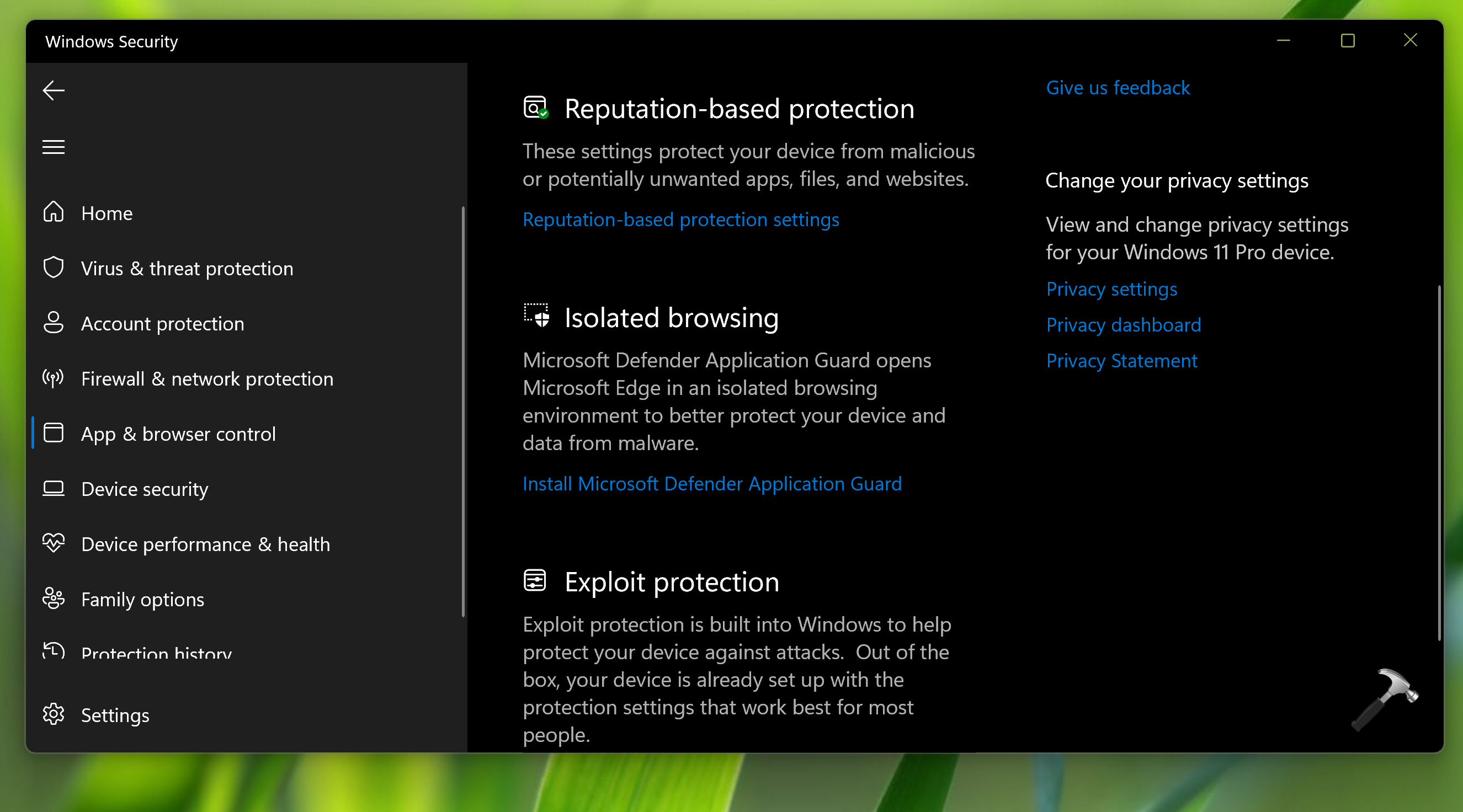 U kunt Windows-beveiliging ook gebruiken om Microsoft Defender Application Guard in te schakelen of te installeren.