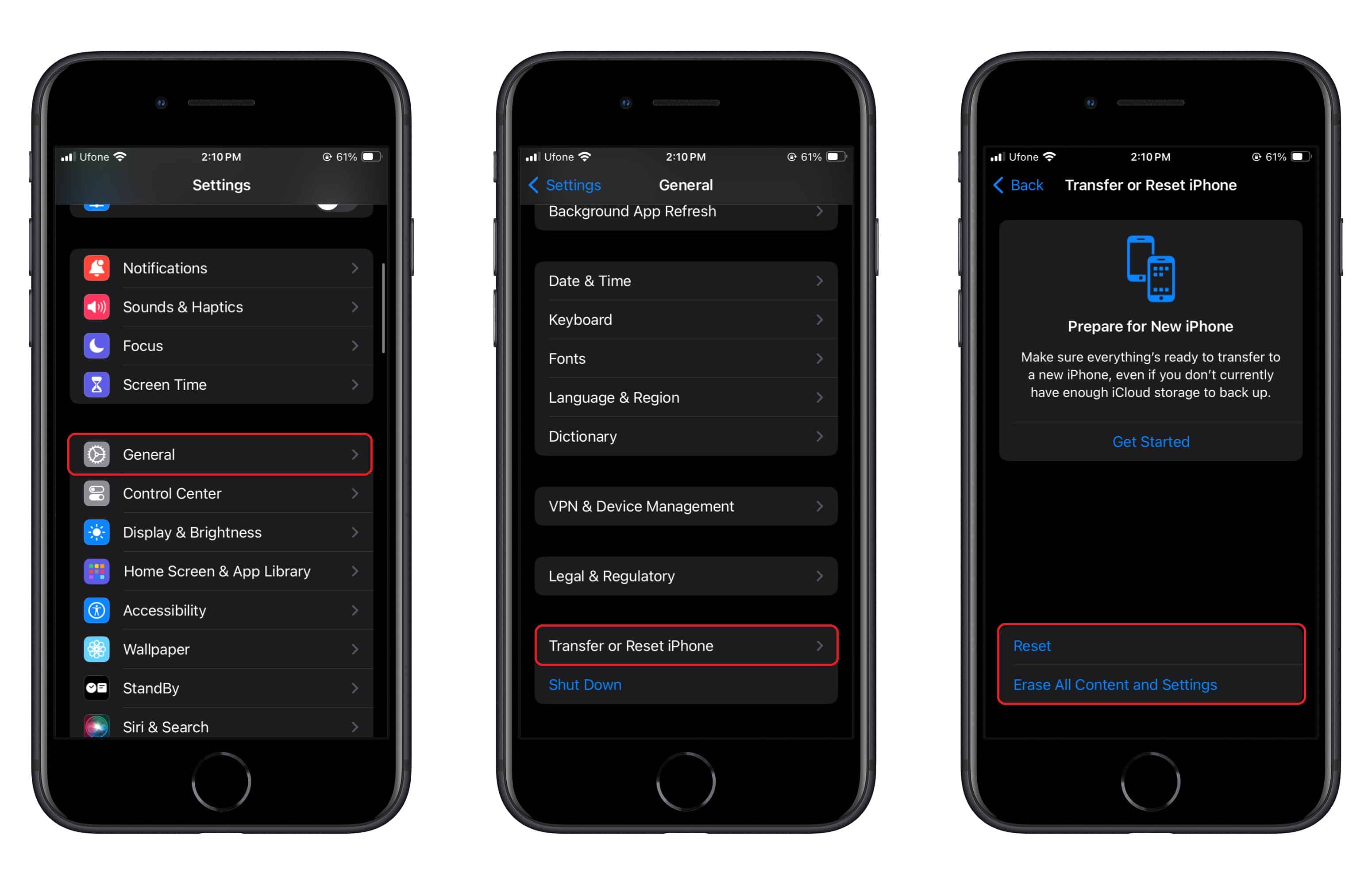 Als geen van de bovenstaande stappen de oververhitting van uw iPhone verhelpt, moet u mogelijk uw iPhone terugzetten naar de fabrieksinstellingen. Zorg ervoor dat u eerst een back-up van uw gegevens maakt via iCloud of iTunes.