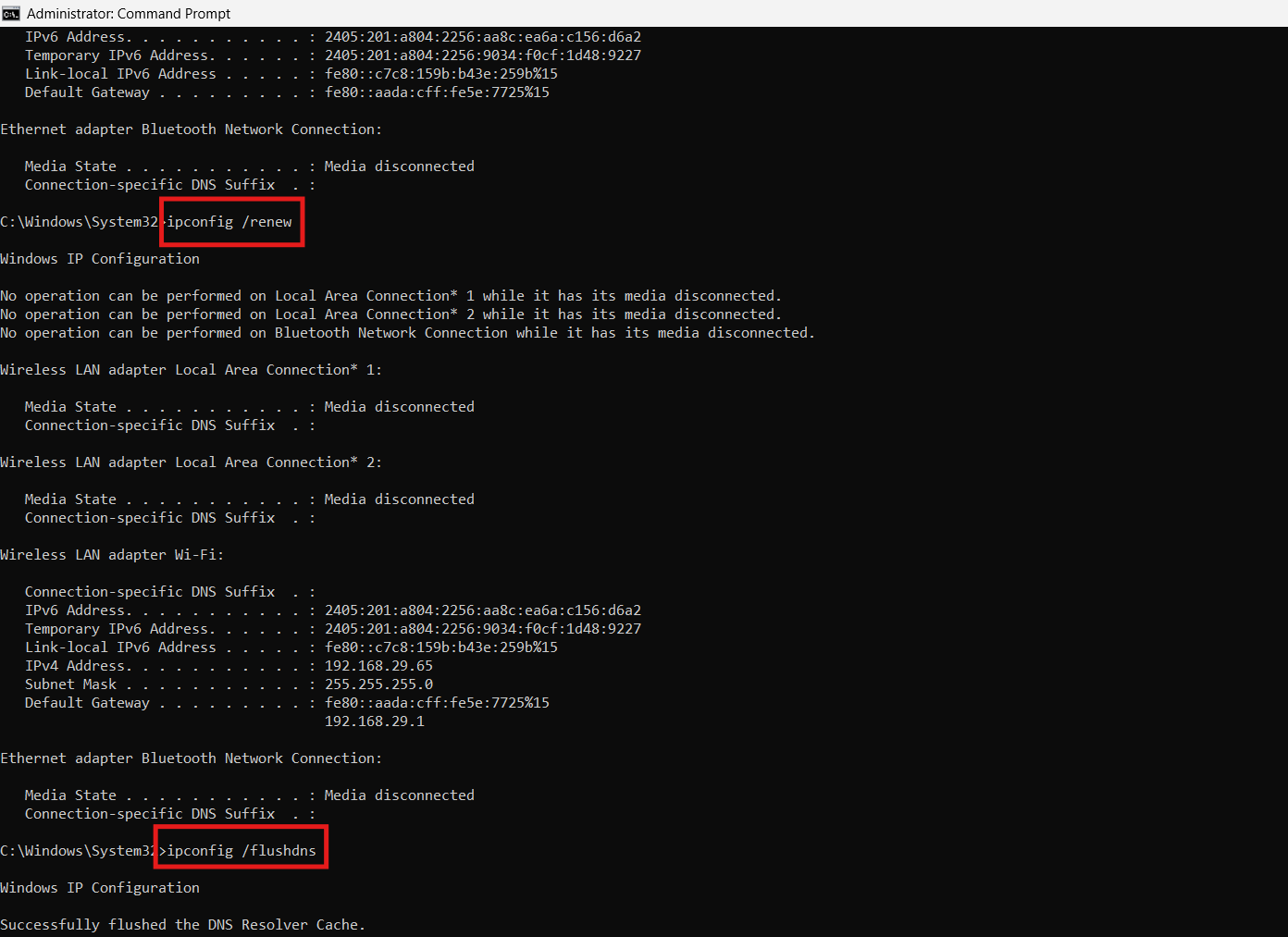3. Ren danipconfig /flushdns.