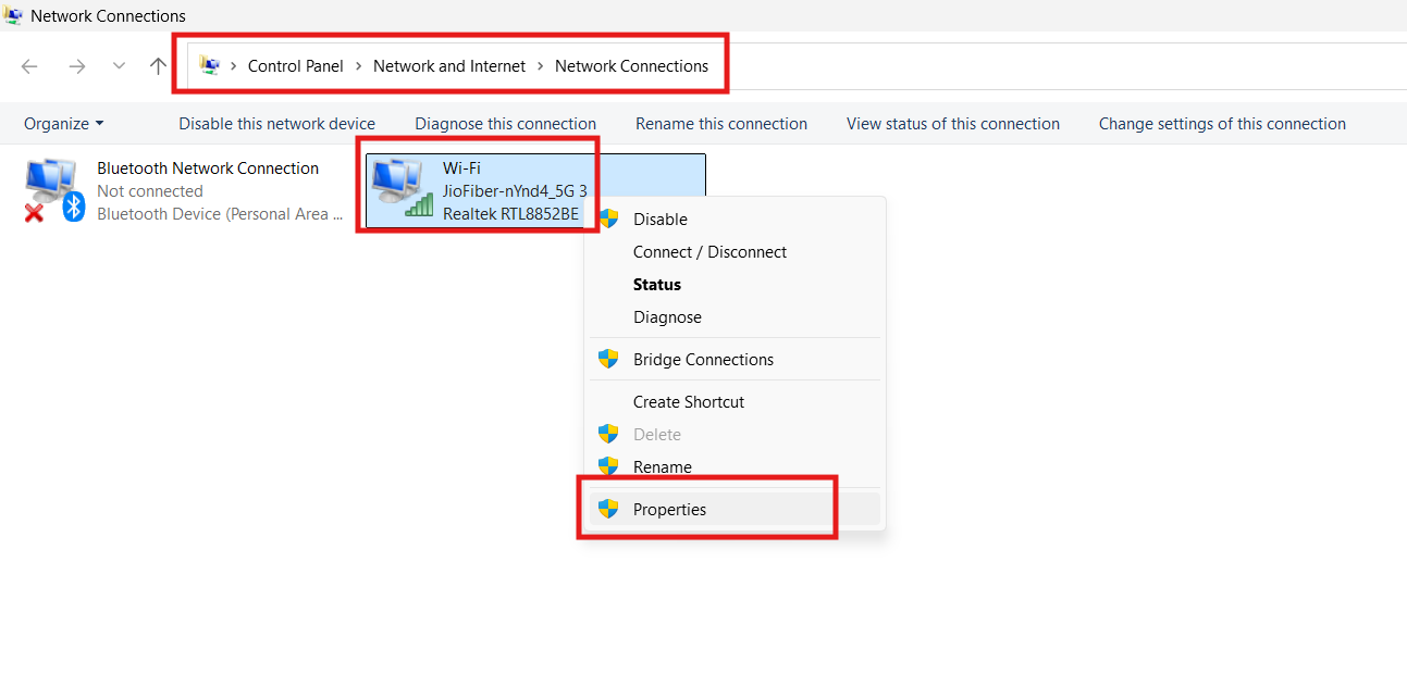 1. Druk op Windows + R, typncpa.cplen druk op Enter. Het venster Netwerkverbindingen wordt geopend.