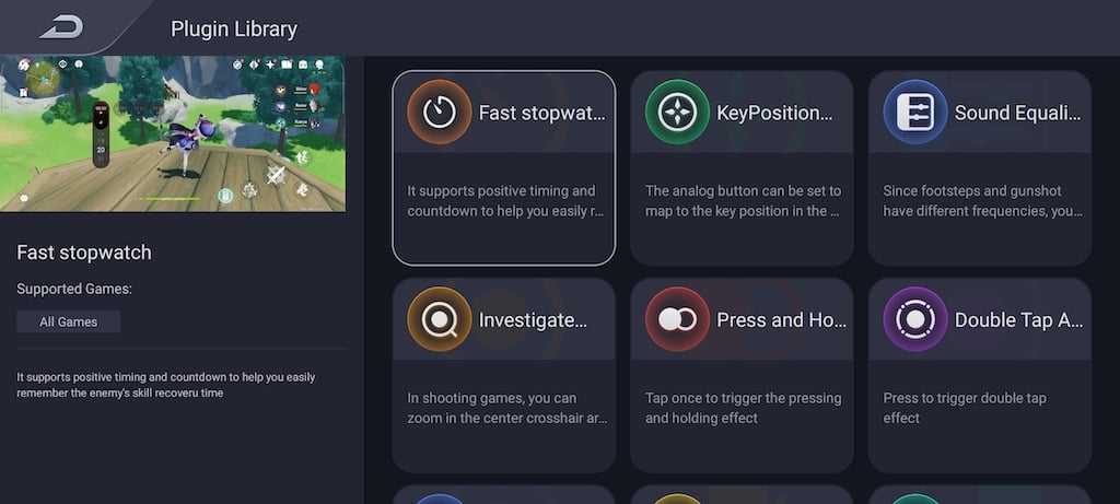 Om toegang te krijgen tot deSpelruimte, zet de rode (of magenta) schakelknop aan de linkerkant van de RedMagic 7 aan. Hierdoor wordt uwSpellobby. SelecteerSuperkrachtbasis>Plugin-bibliotheek. Daar vind je alle superkrachten die je in verschillende games kunt gebruiken, van de mogelijkheid om in te zoomen op het midden van je scherm om verborgen doelen te vinden, tot de mogelijkheid om de kleuren van je scherm om te keren om gecamoufleerde vijanden te detecteren. De meeste van deze plug-ins werken in alle games, hoewel sommige beperkt zijn tot bepaalde titels.