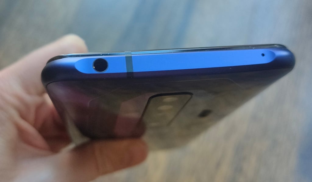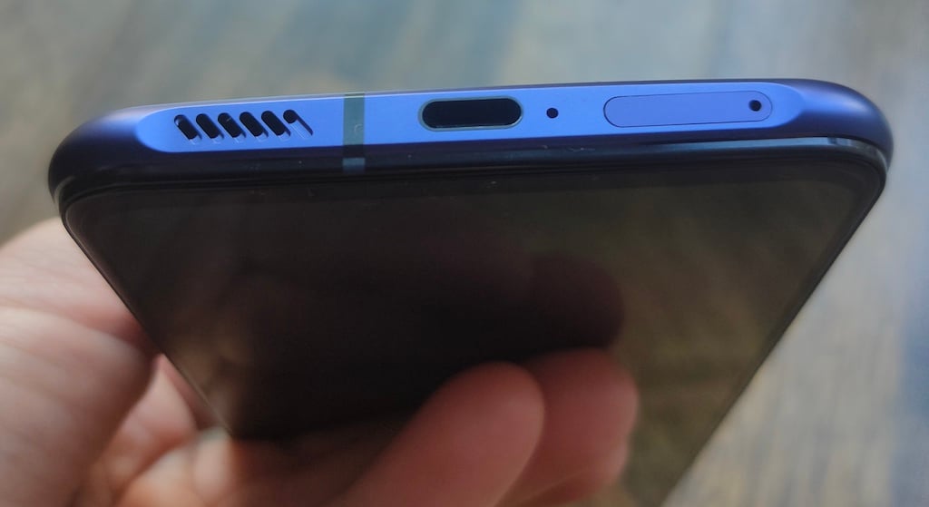 De hoofdtelefoonaansluiting bevindt zich aan de bovenkant van het apparaat, samen met een van de microfoons. De andere microfoon bevindt zich aan de onderkant van de telefoon, waar ook een simkaartsleuf, USB-C-poort en een luidsprekergrill zijn ondergebracht.