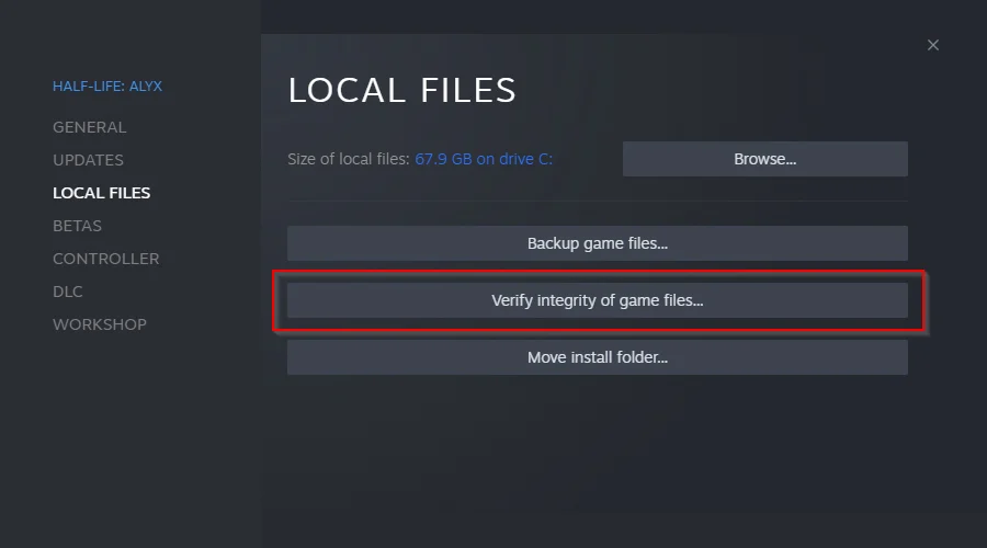 - Ga naar Lokale bestanden en klik opControleer de integriteit vanspelbestanden.