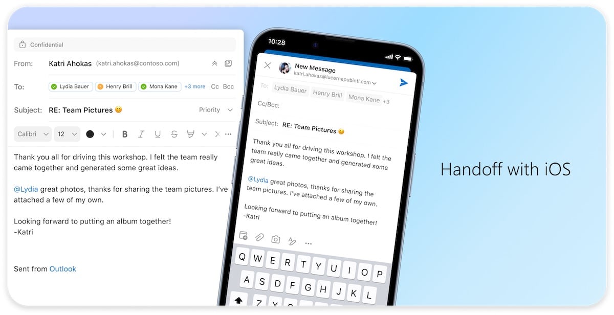 Microsoft vertelde ook dat hoewel gebruikers Outlook voor Mac van Microsoft kunnen downloaden, gebruikers het vanuit de Mac App Store moeten installeren om te kunnen profiteren van Handoff – een Apple-functie waarmee gebruikers taken in apps kunnen voortzetten tussen een Mac- en iOS-apparaat.