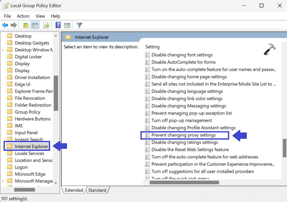User ConfigurationAdministrative TemplatesInternet Explorer