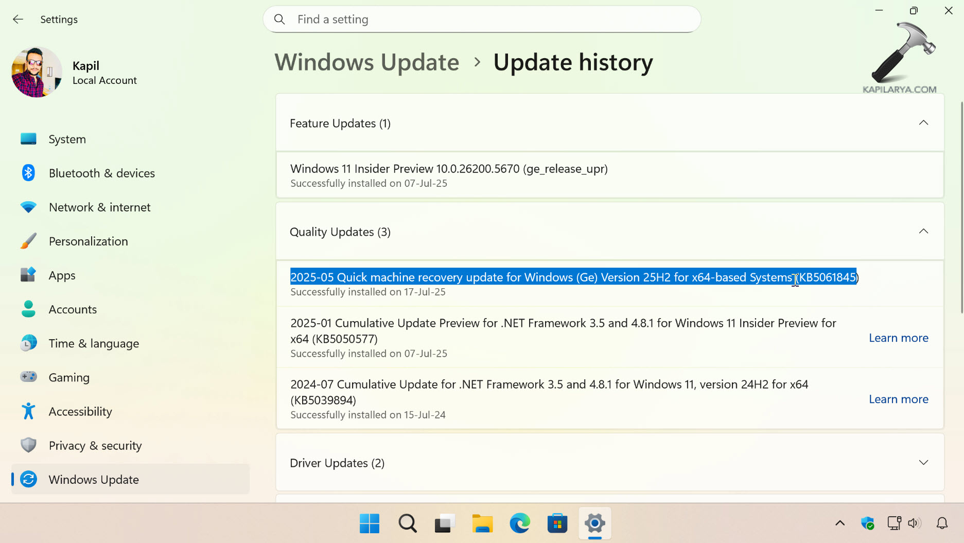 U kunt de updategeschiedenis op het betreffende systeem controleren en u zult zien dat het opstartprobleem is opgelost via Quick Machine Recovery en de toegepaste KB Windows Update.