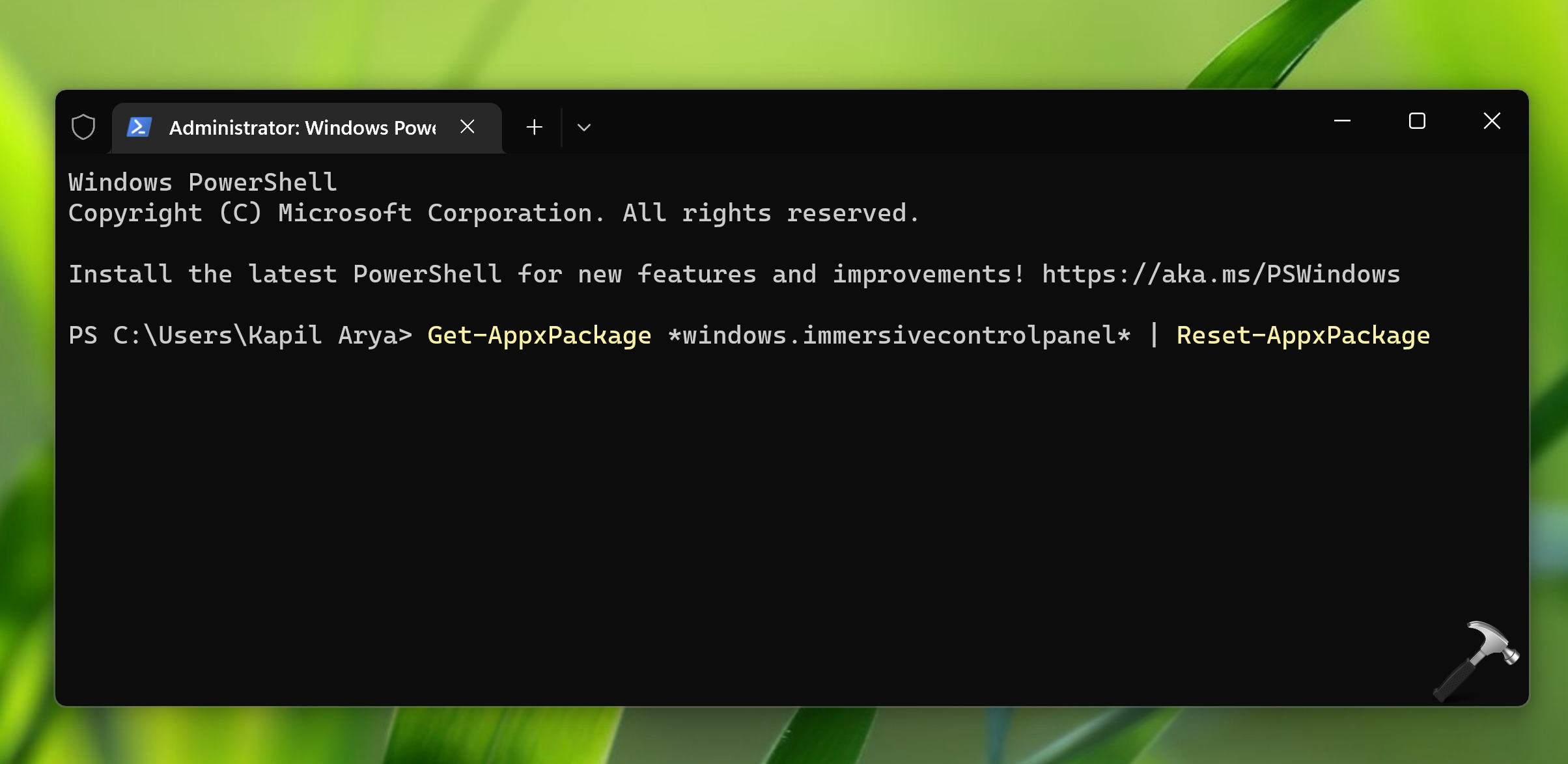 Get-AppxPackage *windows.immersivecontrolpanel* | Reset-AppxPackage