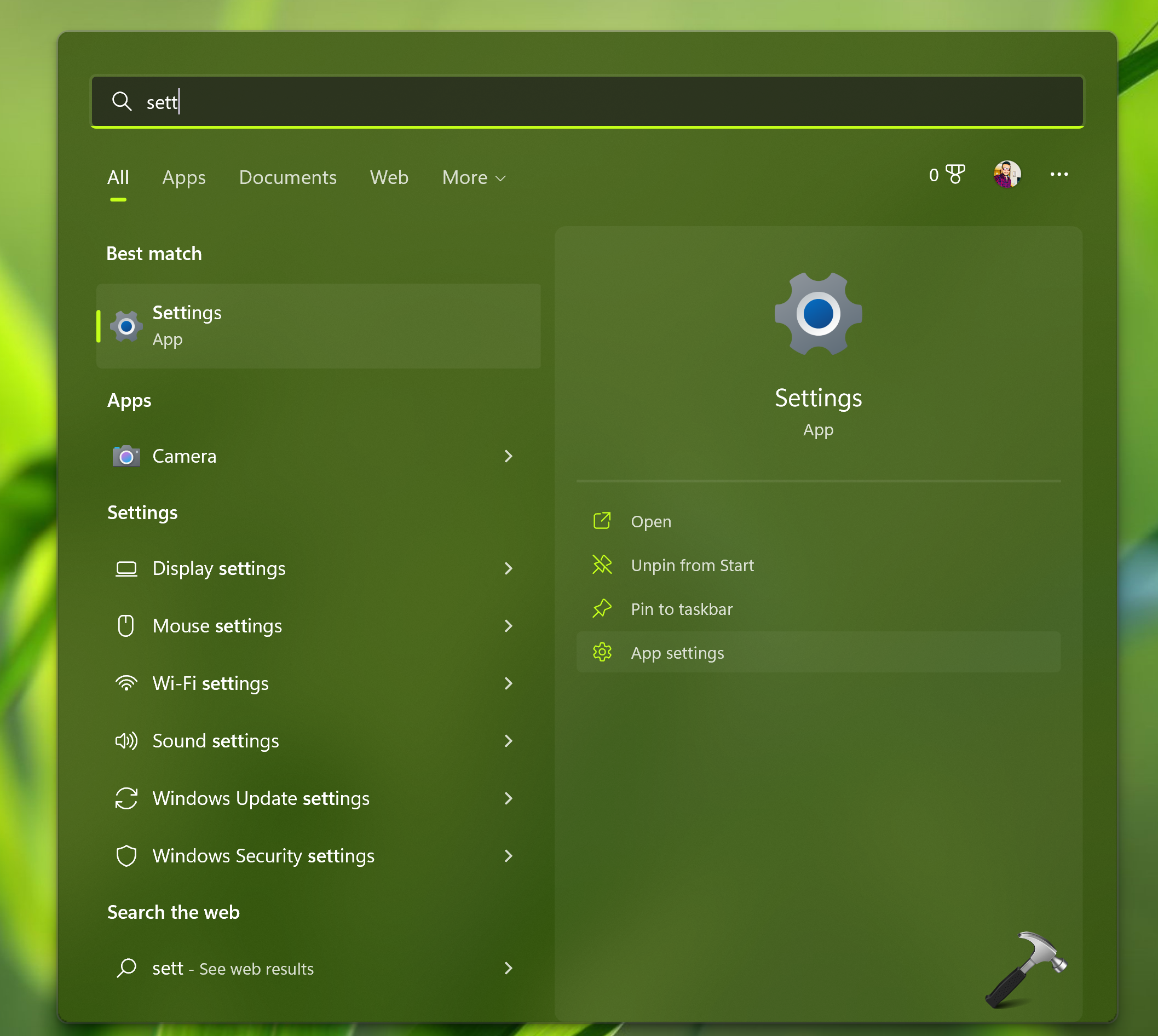 - Klik met de rechtermuisknop of selecteer App-instellingen in de zoekresultaten.