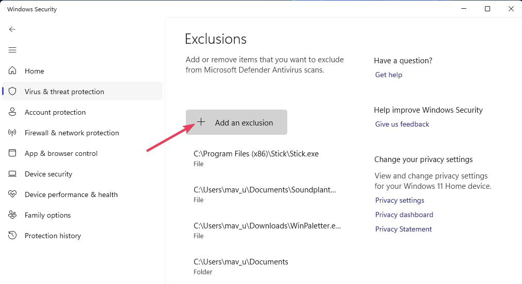5. Klik opVoeg een uitsluiting toeom de te selecterenRocketLeague.exevanuit de map met de installatiemap op uw pc.