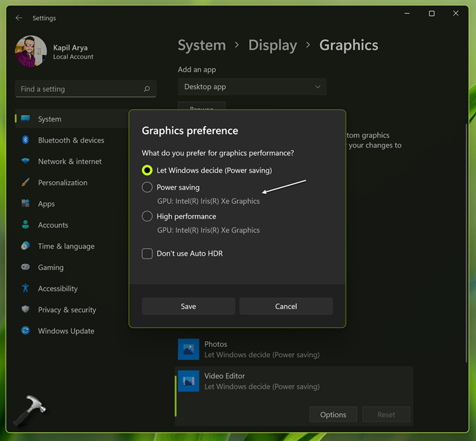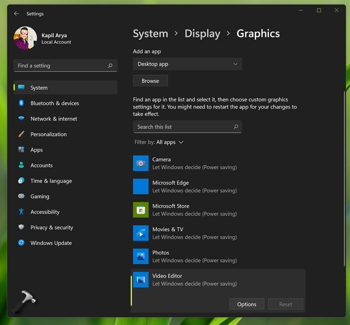 Als u uw apps grafisch anders wilt gedragen, kunt u de grafische voorkeur voor apps instellen. Windows 11 heeft de instellingen beschikbaar, zodat u deze voor bepaalde apps van uw keuze kunt configureren. Met deze instellingen kunt u ook de gewenste GPU instellen, voor het geval u meer dan één GPU hebt aangesloten. U kunt de GPU afzonderlijk opgeven voor Microsoft Store-apps en desktop-apps.