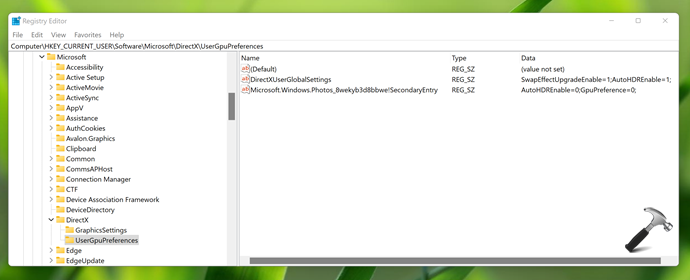 HKEY_CURRENT_USERSoftwareMicrosoftDirectXUserGpuPreferences