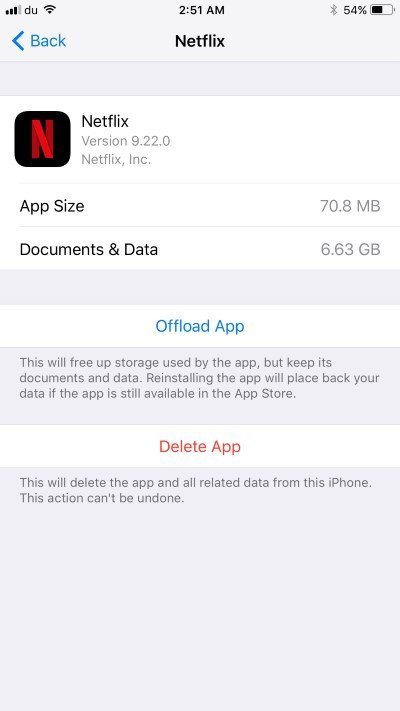 - Tik op de knop “Offload App” en bevestig opnieuw wanneer daarom wordt gevraagd