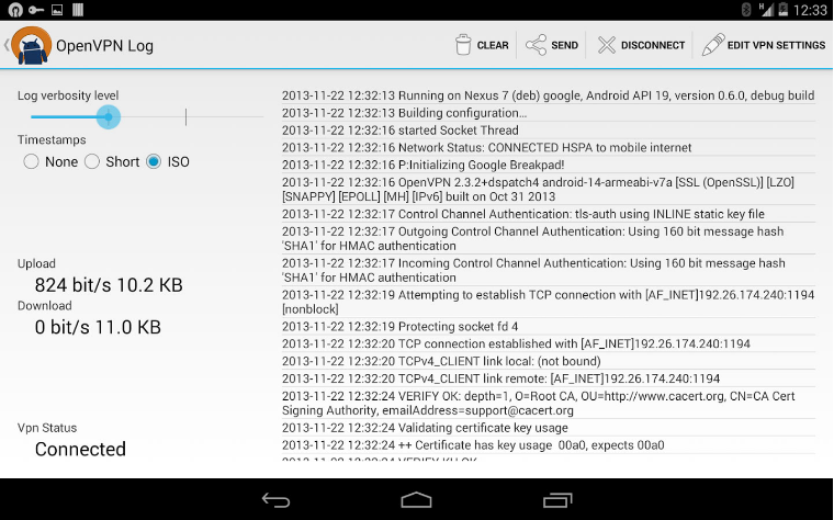 Het mooie is dat veel diensten afhankelijk zijn van VPN. OpenVPN werd een applicatie voor Android. U kunt het gebruiken om verbinding te maken met elke VPN-server die OpenVPN gebruikt.